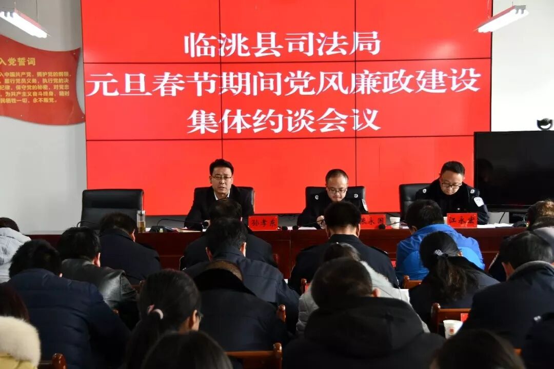 为进一步加强全县司法行政系统党员干部党性修养和法纪观念,确保广大党员干部筑牢拒腐防变思想防线,近日,365体育投注怎么玩_365bet体育在线滚球下载_28365-365.com县司法局召开2019年元旦春节期间党风廉政建设集体约谈会议,通过集体约谈,层层传导压力,靠实工作责任。会议由局党组书记、局长孙孝东同志主持,局领导班子成员、各股室负责人及18个司法所所长参加会议。