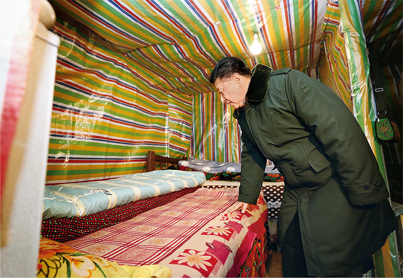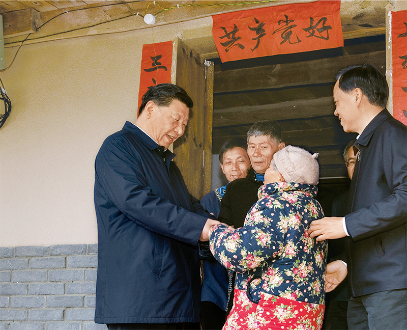 中华民族传统节日农历春节来临之际,中共中央总书记、国家主席、中央军委主席习近平来到四川考察调研,看望慰问各族干部群众,向全国各族人民致以美好的新春祝福。这是2018年2月11日上午,习近平在凉山彝族自治州昭觉县三岔河乡三河村贫困户吉好也求家中看望。新华社记者 鞠鹏/摄