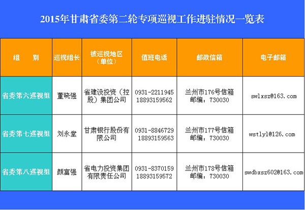 近日,甘肃省委巡视工作领导小组召开2015年第二轮专项巡视动员会,部署开展第二轮专项巡视工作。经甘肃省委批准,第二轮专项巡视将对省建设投资(控股)集团公司、甘肃银行股份有限公司、省电力投资集团有限责任公司3家省属国有企业开展巡视。