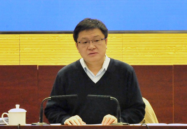 1月10日上午,省委常委、省纪委书记刘昌林主持召开省纪委常委会议,传达学习十八届中央纪委七次全会精神。(王彬 摄)