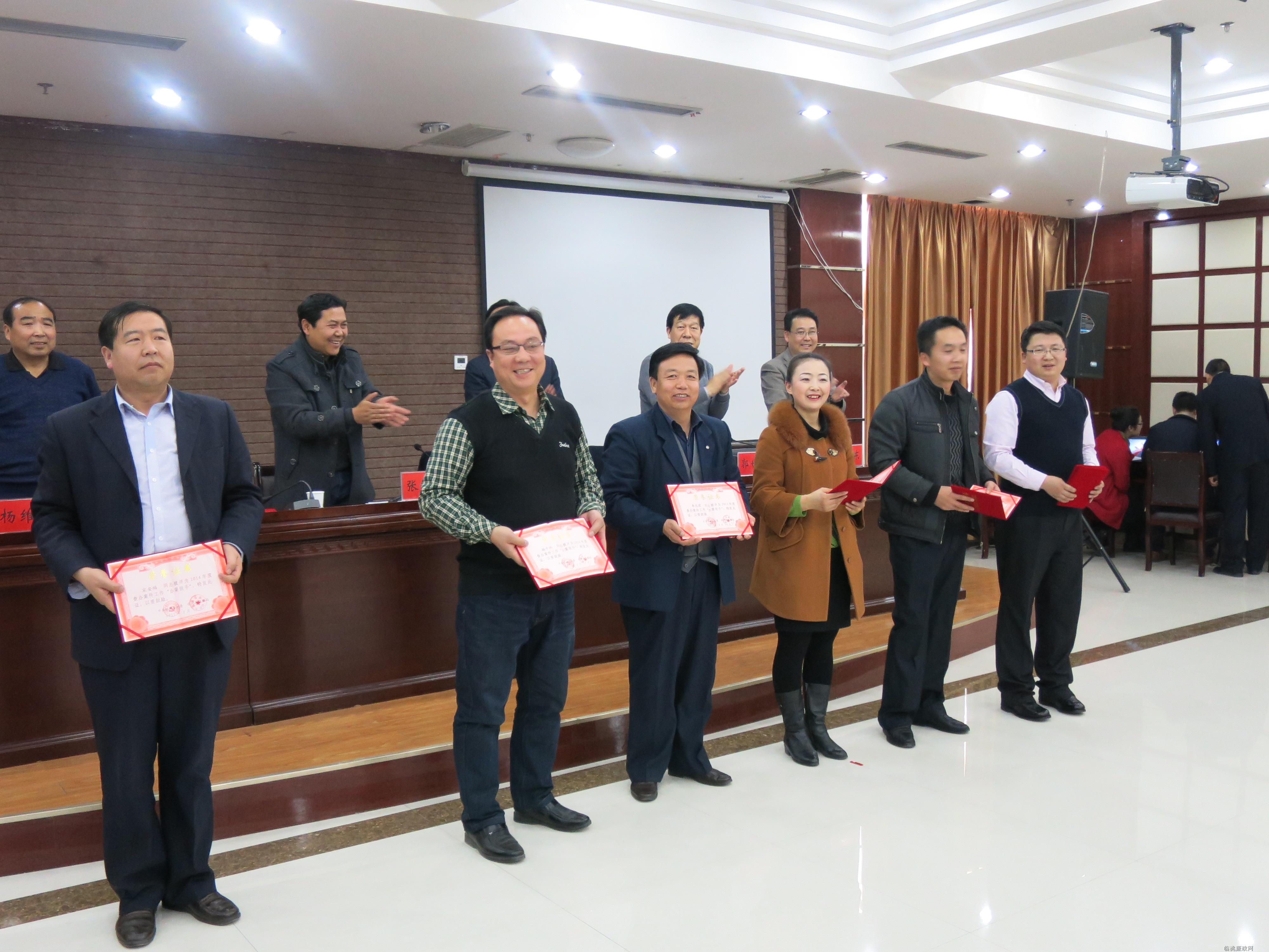 会议首先宣读了《县纪委监察局关于表彰奖励2014年度纪检监察工作先进集体的个人的决定》《县纪委监察局关于表彰奖励2014年度查办案件工作先进集体和“办案能手”的决定》《县纪委监察局关于表彰奖励2014年度纪检监察宣传报道工作先进个人的决定》等文件,明确了相关表彰奖励事项。其次,南锡诚、郭世才等领导对受到表彰的5个工作先进集体、5个查办案件先进集体、10名先进工作者、10名办案能手颁发荣誉证书并向他们表示了热烈的祝贺。最后南锡诚强调,此次受到表彰的集体、个人应继续发挥模范带头作用,以更加优良的作风,再接再厉,扎实工作,力争在新的一年中再创佳绩。各纪检监察组、室和全体纪检监察干部要向受到表彰奖励的先进集体和个人学习,始终保持忠诚、干净、担当的优良品质和作风,锐意进取、扎实工作,不断开创全县纪检监察工作新局面。